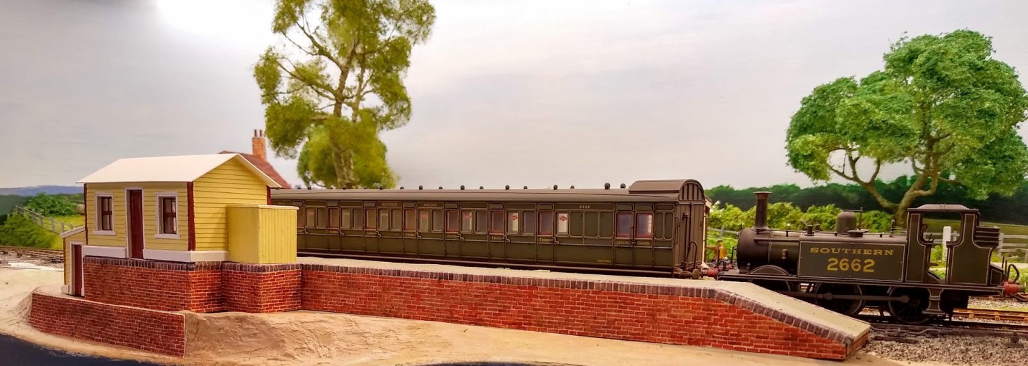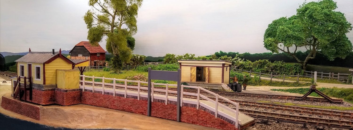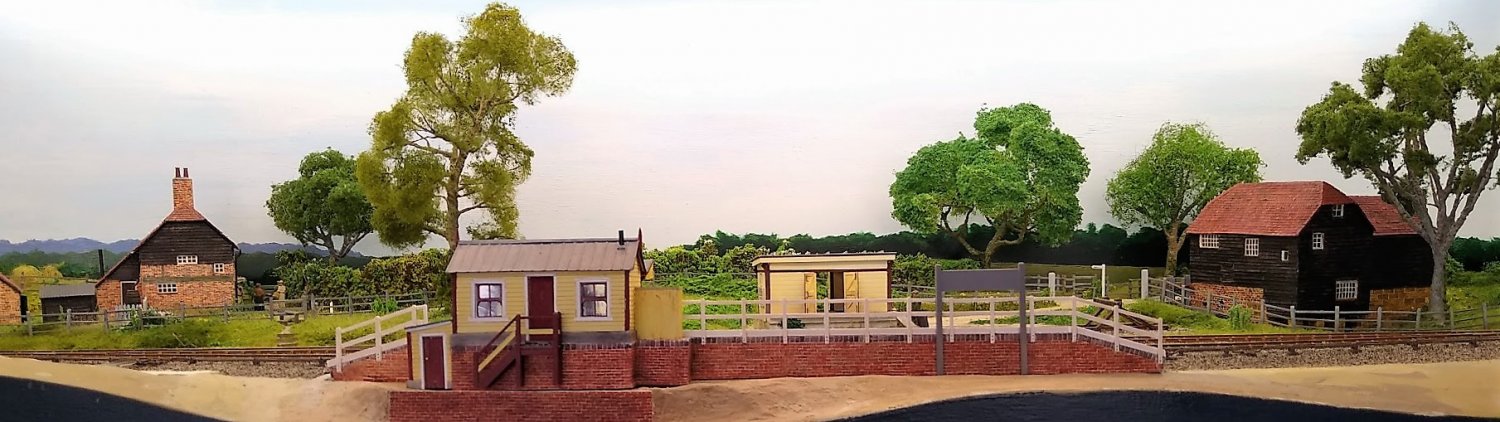 The landscape behind the tracks is nearly completed. The tree in front of the mill needs doing, and the railway fencing at that end... and people of course.